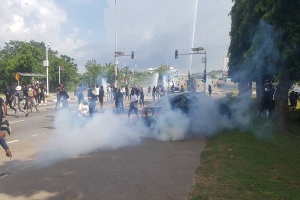 While the police and soldiers dispersed the campaigners with tear gas and horse whips, hoodlums assaulted them and set ablaze eight vehicles at Kabusa Junction, Apo, and at the Central Business District.
